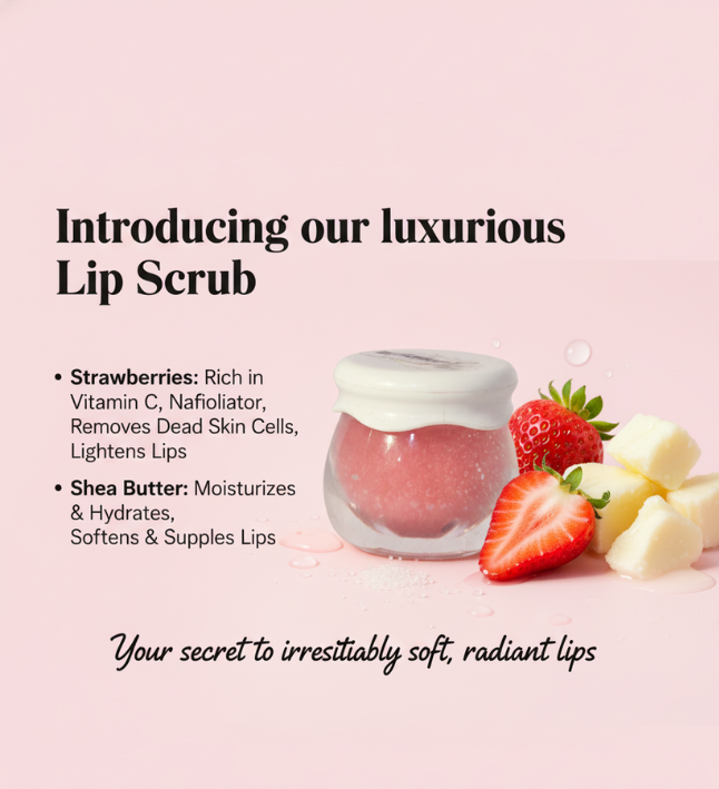 Exfoliate, brighten, and revive dull lips with our Strawberry Sugar Lip Scrub. Packed with vitamin C-rich strawberries and nourishing shea butter, it gently removes dead skin while fading lip darkness for naturally pink, smooth lips.